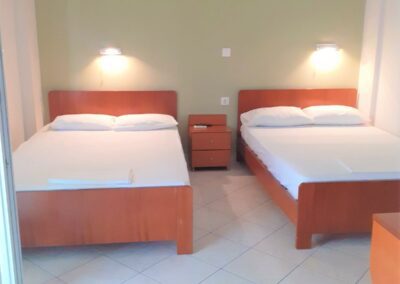 – Dimenzije ležajeva u Grčkoj se razlikuju od naših standarda. Grčki standard za normalan ležaj je 75-90 cm sa 180-200 cm, francuski ležaj 110-150 cm sa 180-200 cm. Pomoćni ležaj u svim objektima u Grčkoj je na sklapanje, drvene ili metalne konstrukcije ili fotelje na rasklapanje, manjih dimenzija.